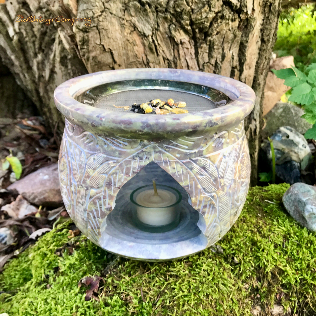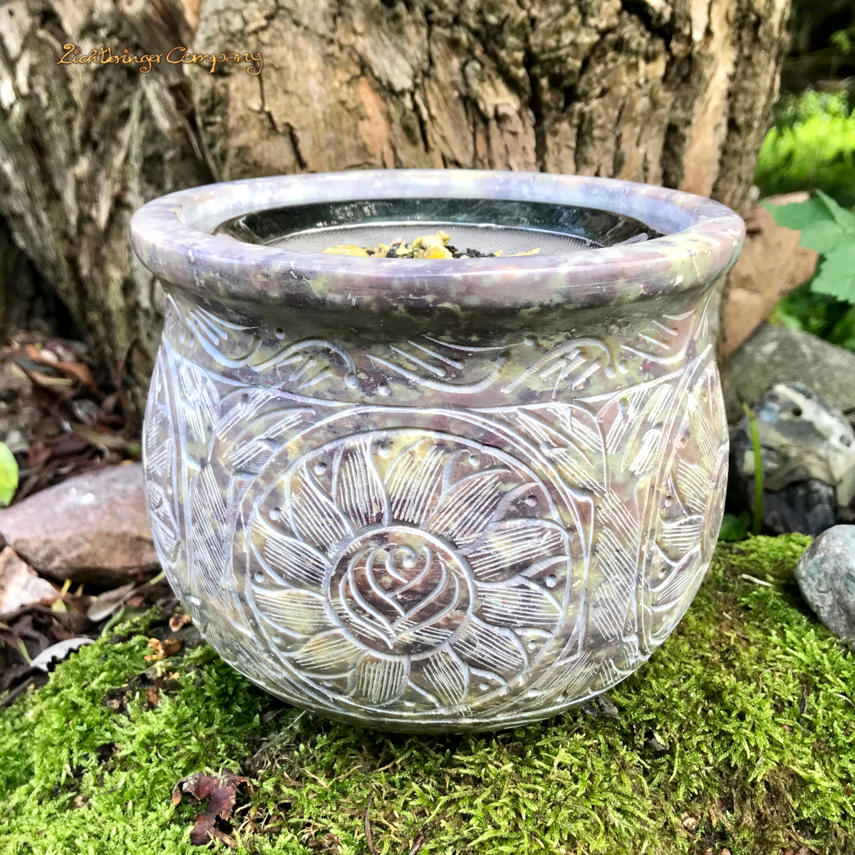 - Räucherhöhe: ca. 11 cm - sehr sanftes Räuchern mit Harzen, Hölzern, Kräutermischungen - besonders für Kräuter zu empfehlen, ätherisch-atmosphärisch! Und durch den hohen Abstand können wir das Stövchen zur Verwendung mit unseren Teelichten aus Raps- oder Bienenwachs empfehlen.