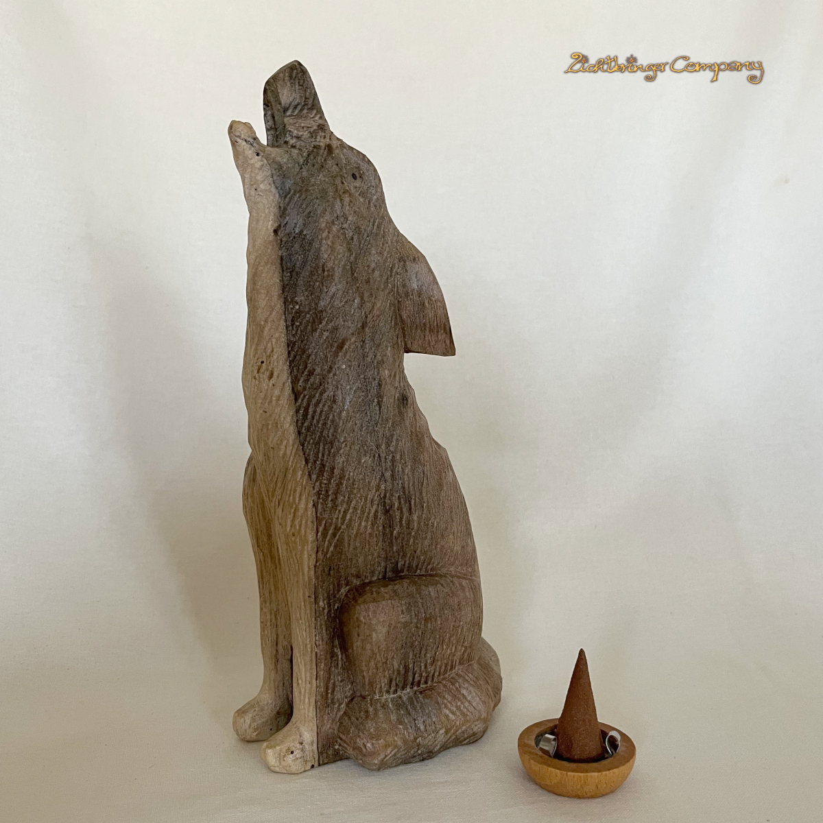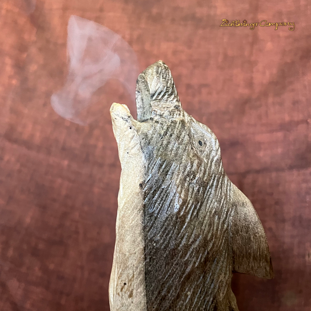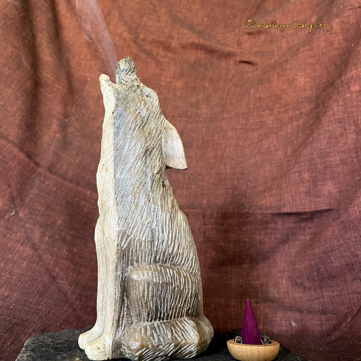 Wölfe sind tief soziale Wesen, die meist im Rudel leben. Wir verbinden sie mit Kraft, Mut, Stärke, Einstehen für den eigenen Weg. Der Wolf ist mit seinen Instinkten verbunden und steht für die Stimme der Intuition, die Weisheit aus dem Inneren. Räuchern ist schon seit Urzeiten eine Verbindung mit diesen inneren Kräften, eine Brücke zwischen Materie und Spirit.