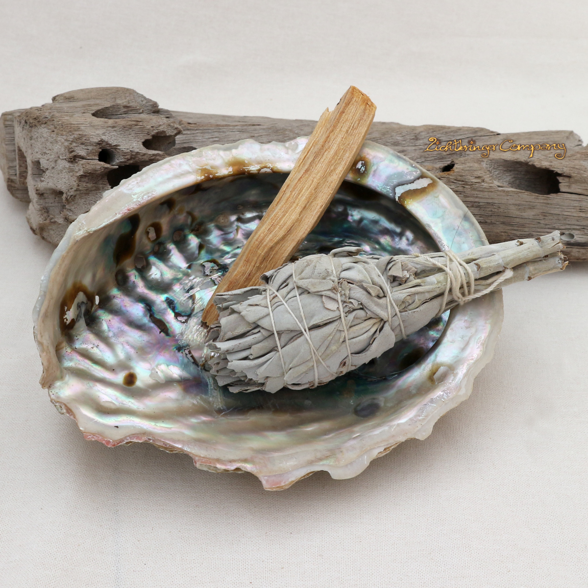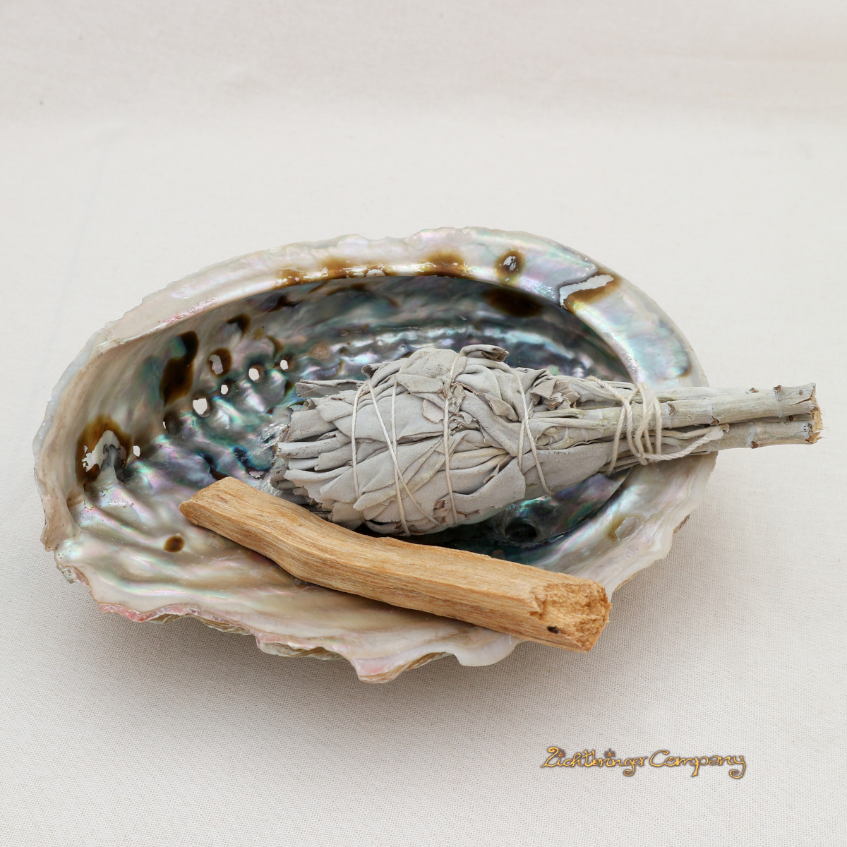 - Inhalt: je nach Auswahl ein Räucherbündel Weißer Salbei (Gewicht ca. 10-15 Gramm), ein Palo Santo Räucherholz ca. 8-10 cm lang, und eine große Paua Muschel ca. 13 * 10 cm